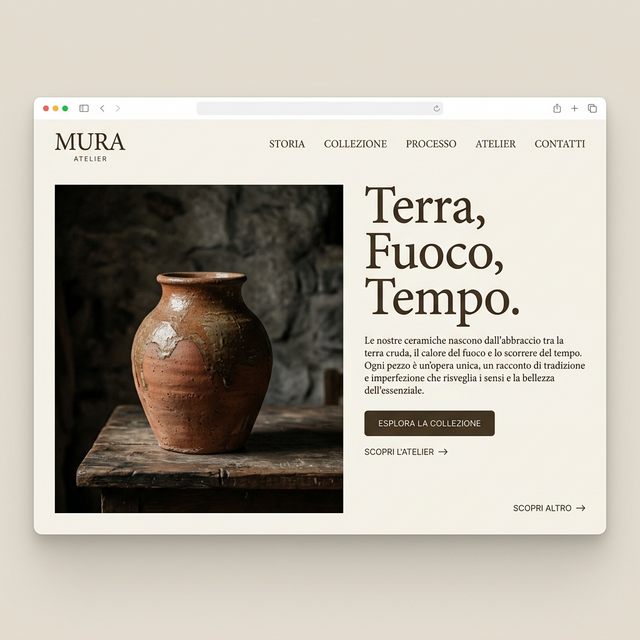E-commerce artigianale per un atelier di ceramica italiana di lusso.